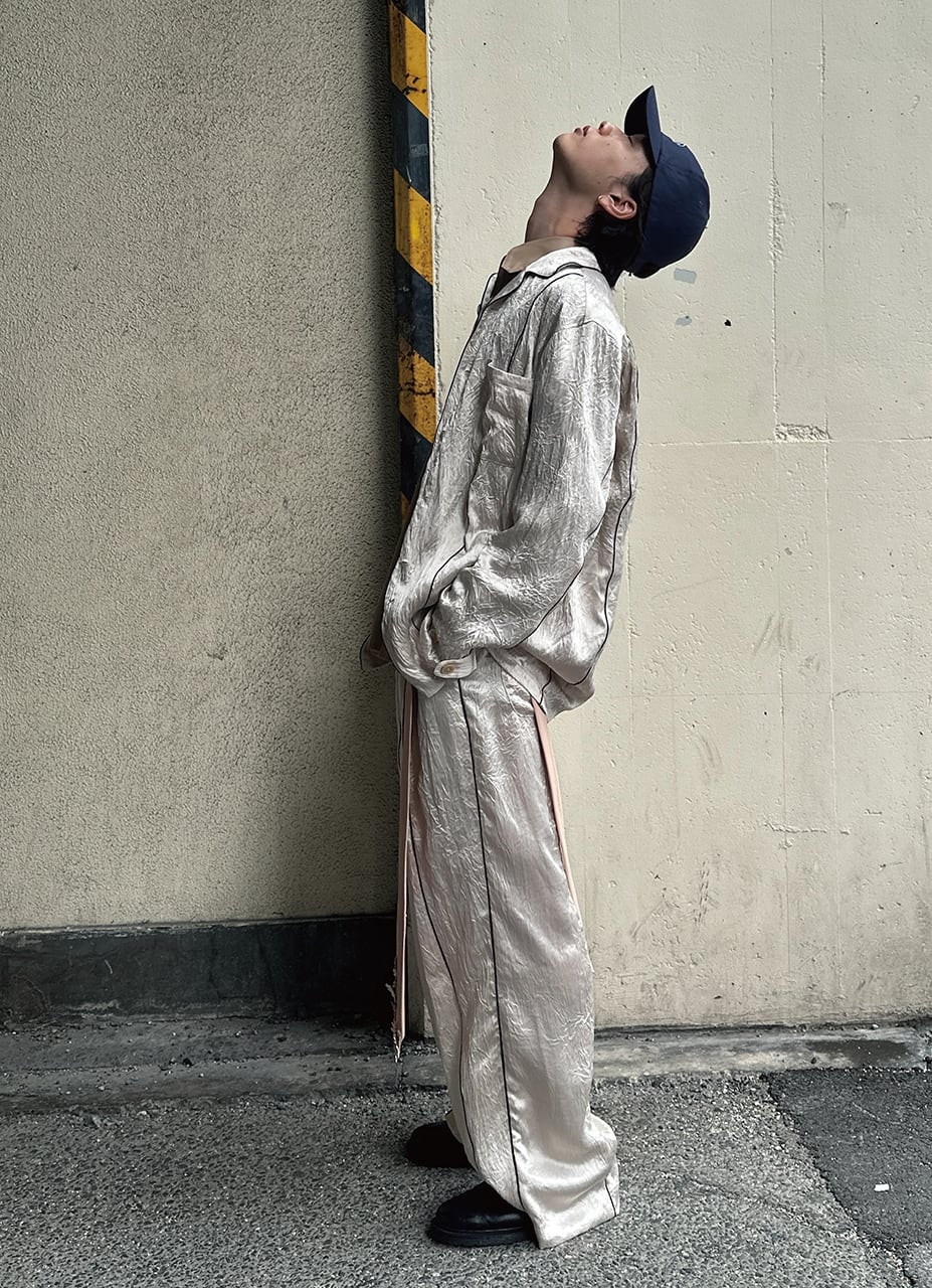 ドレッシーな素材感とリラックスムードを融合させた、街中で着ることを前提にデザインされたパジャマシャツ。