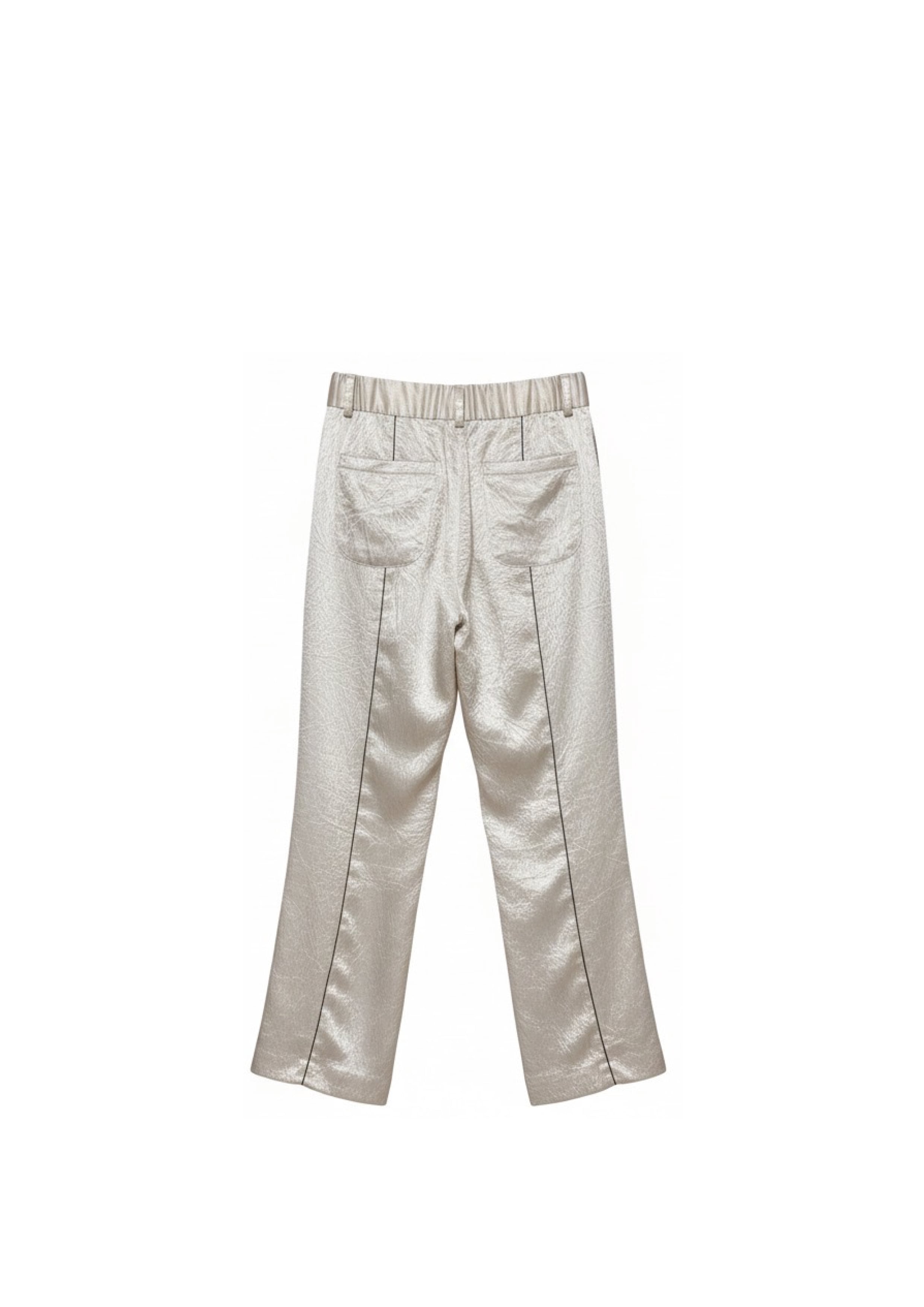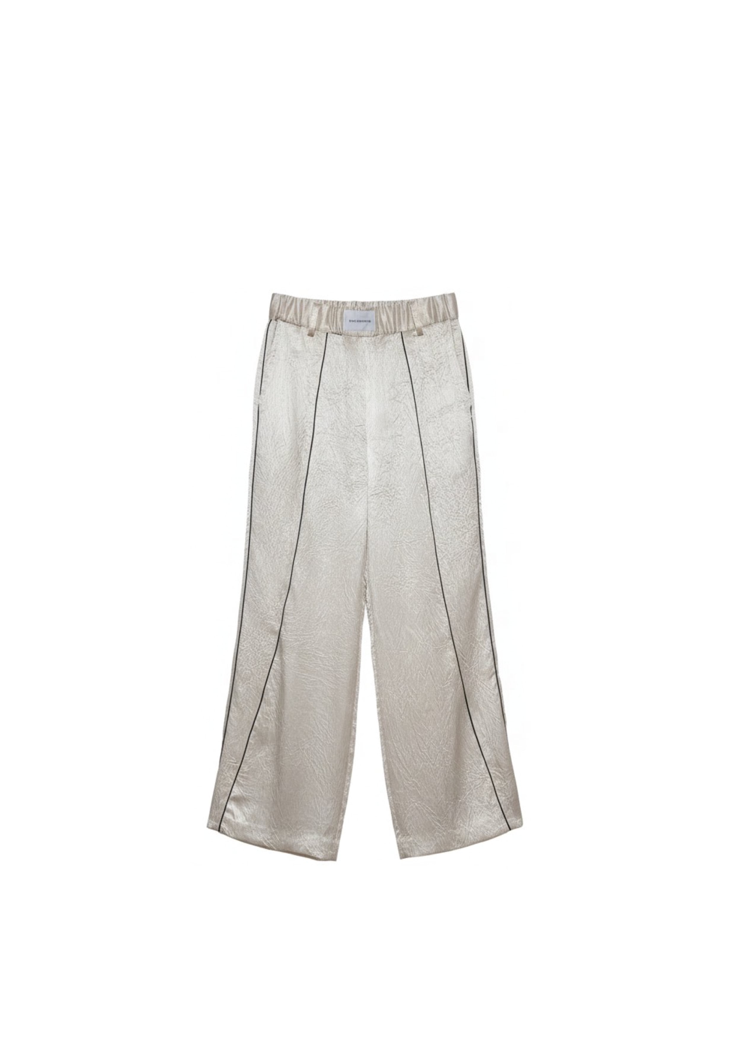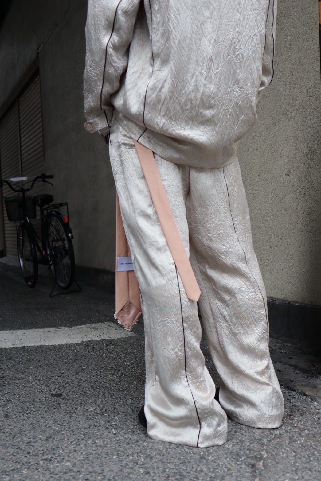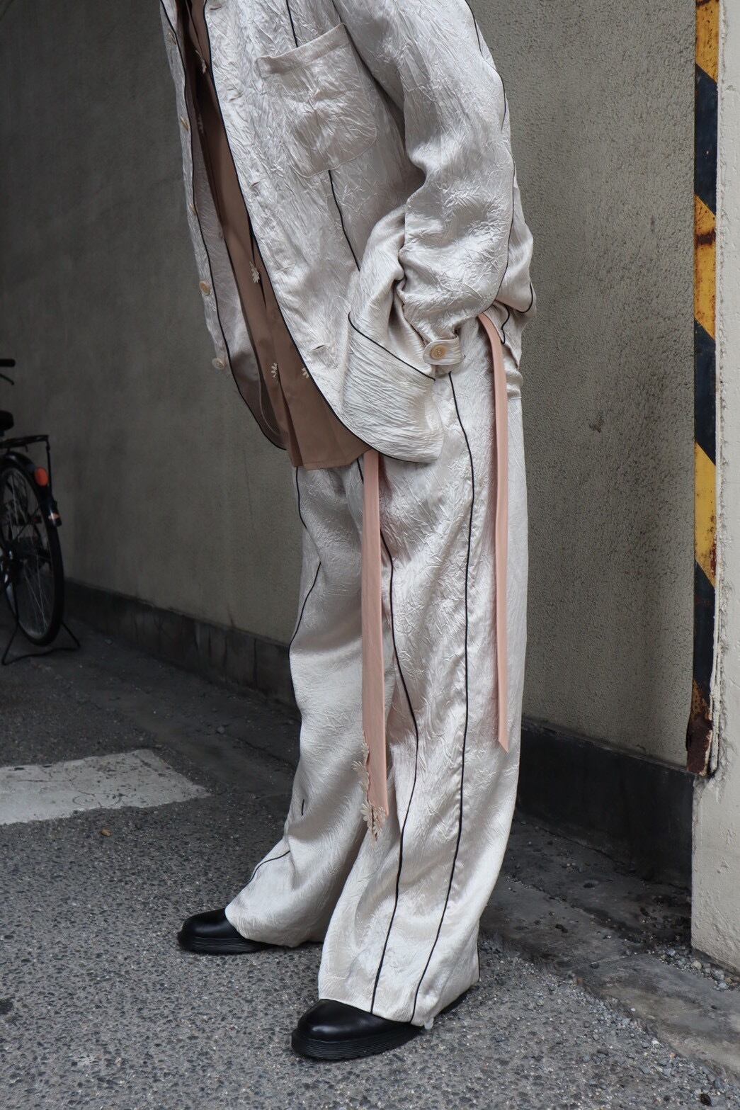 ドレッシーな素材感とリラックスムードを融合させた、街中で着ることを前提にデザインされたパジャマパンツ。