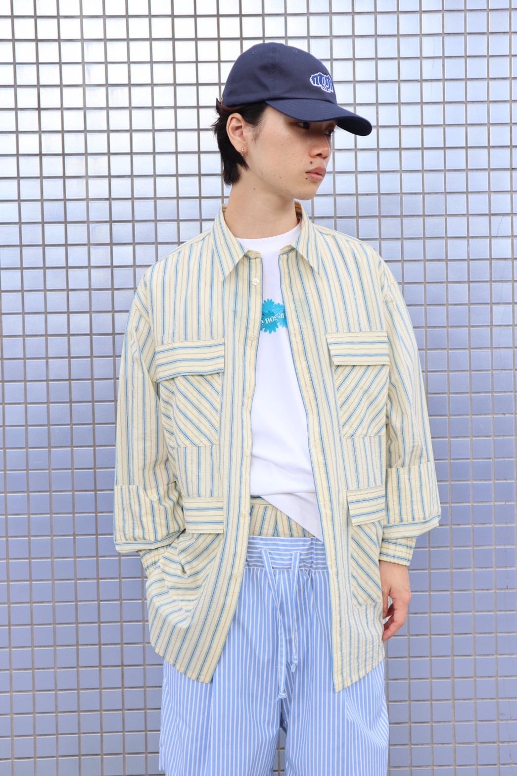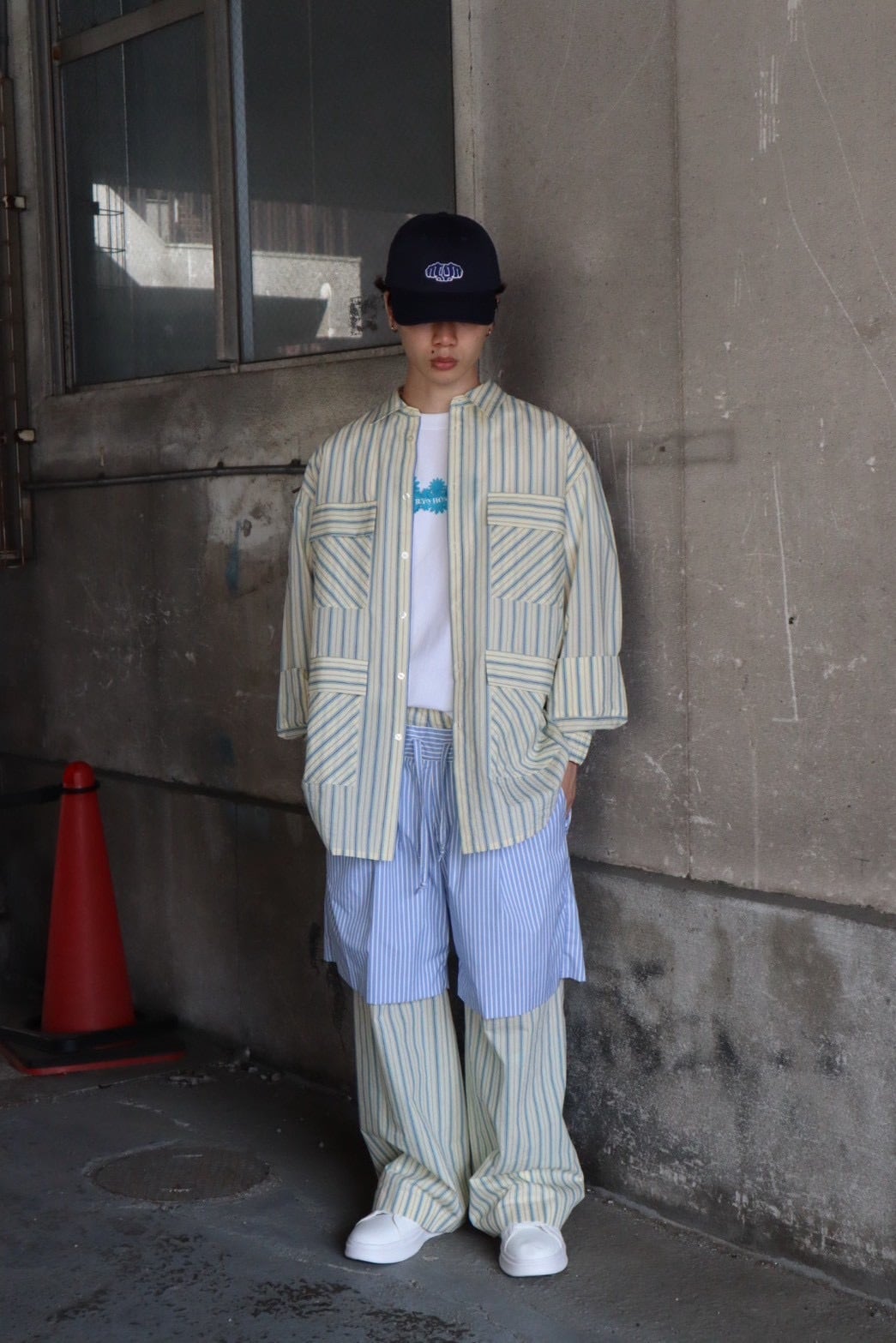 バックにはブランドネームを縫い付け、その上に立体的なモチーフを重ね、挟み込んでいるデザイン。シンプルながらも、モチーフの立体感、プリント、縫い付けといった異なる手法を組み合わせ、今期テーマの「侵食」を表現しています。