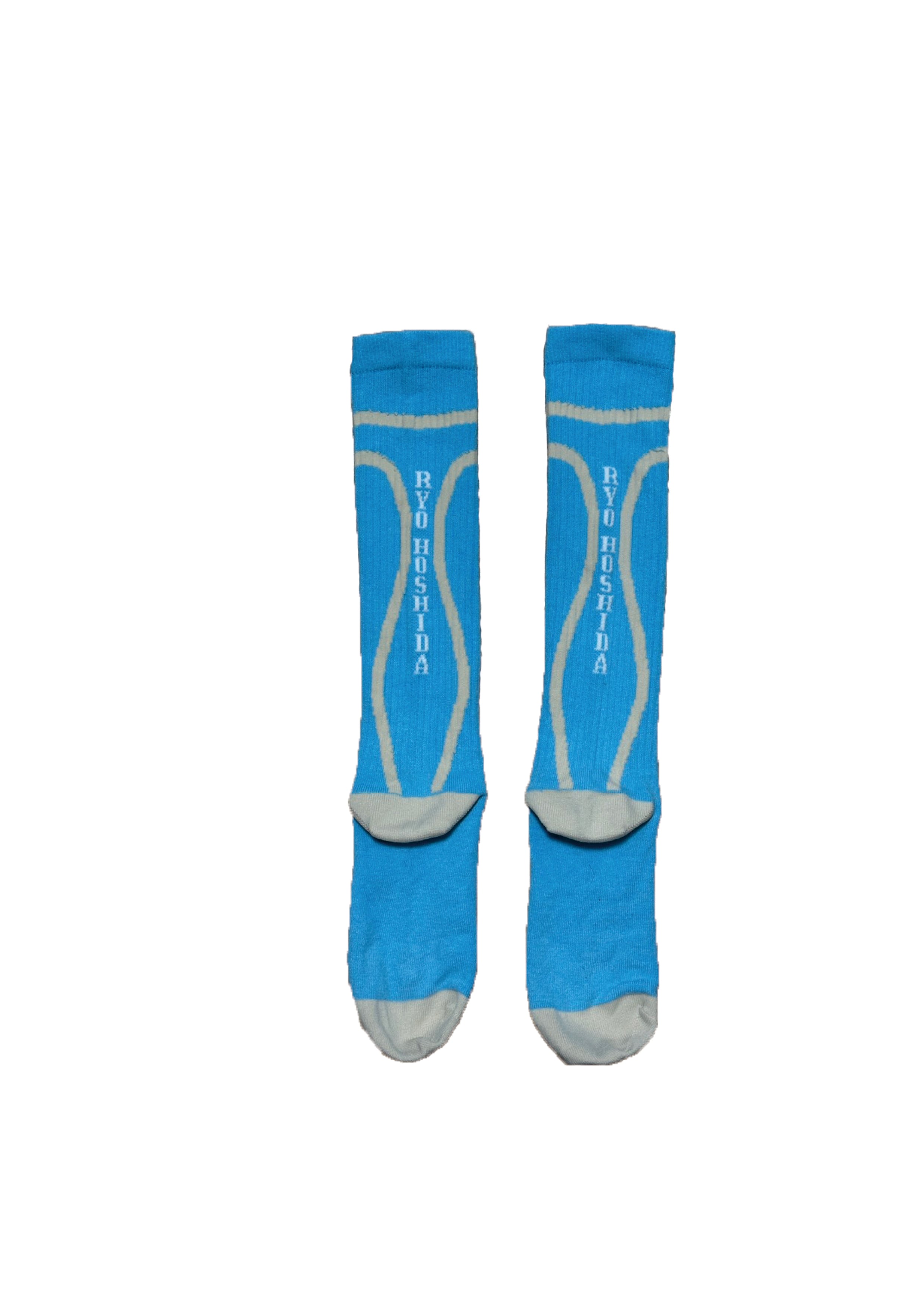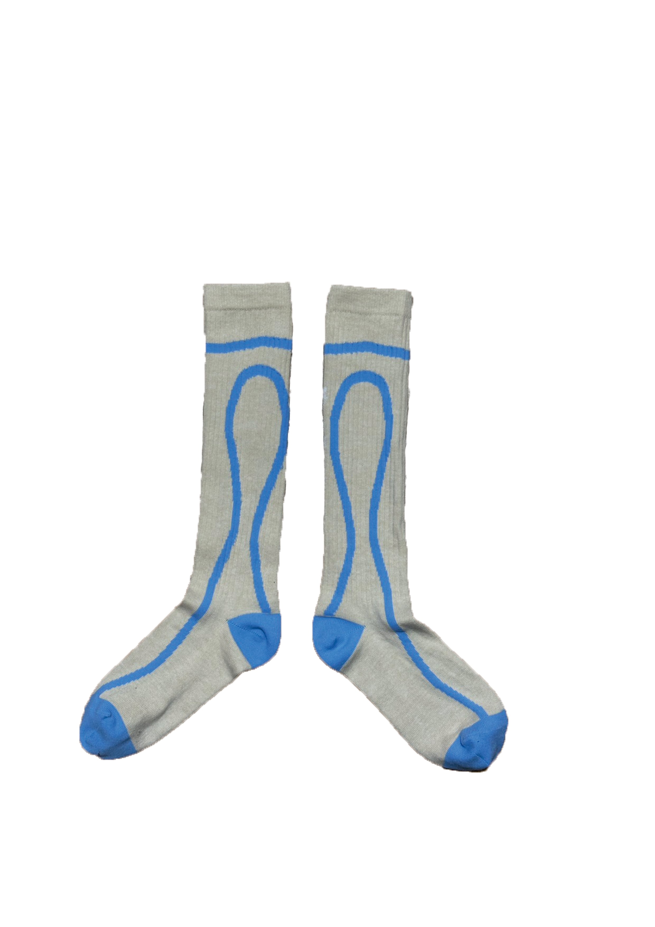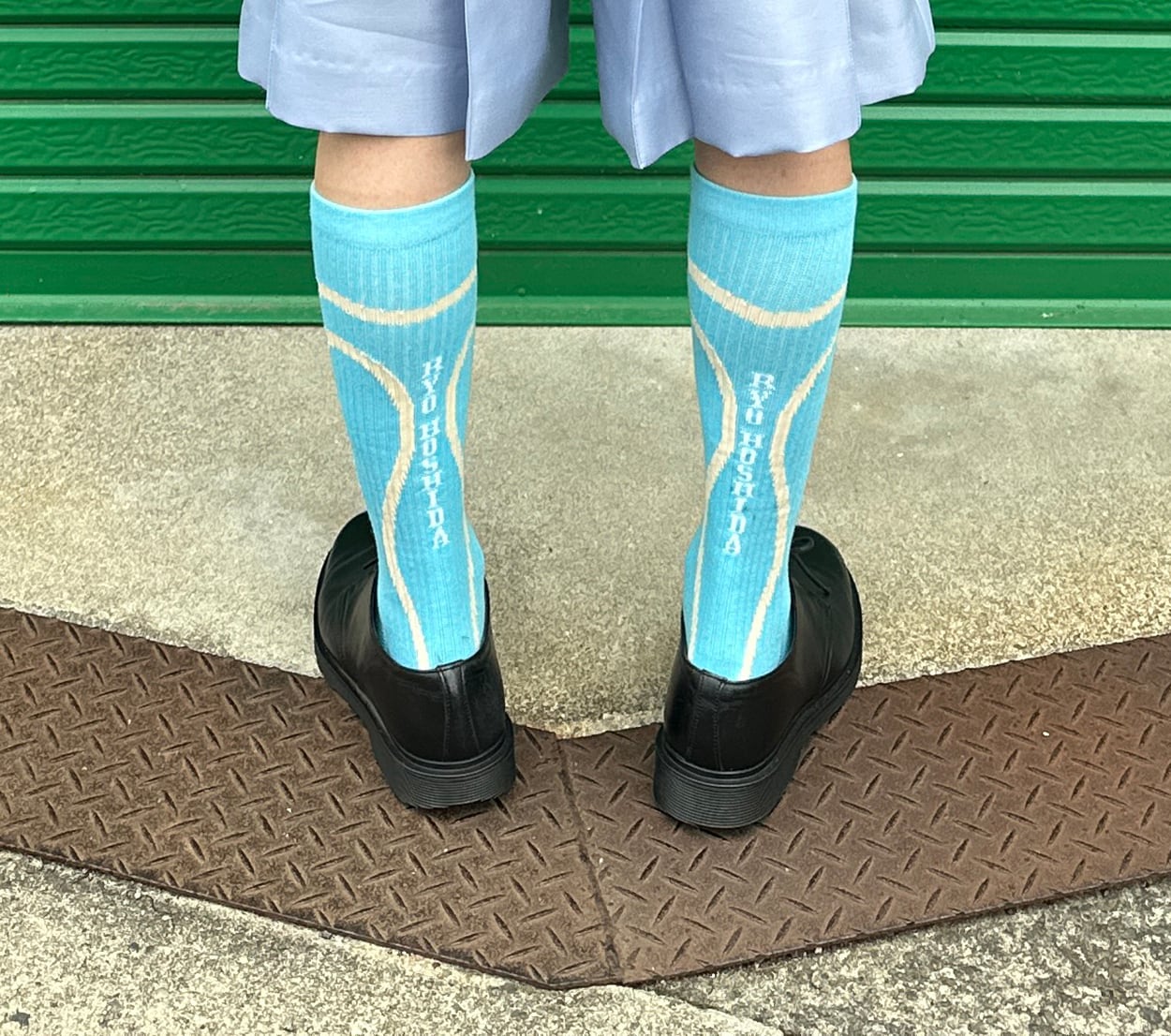今季のシーズンテーマ「EROSION(侵食)」をイメージした、ベージュとサックスのバイカラーLONG SOCKS。